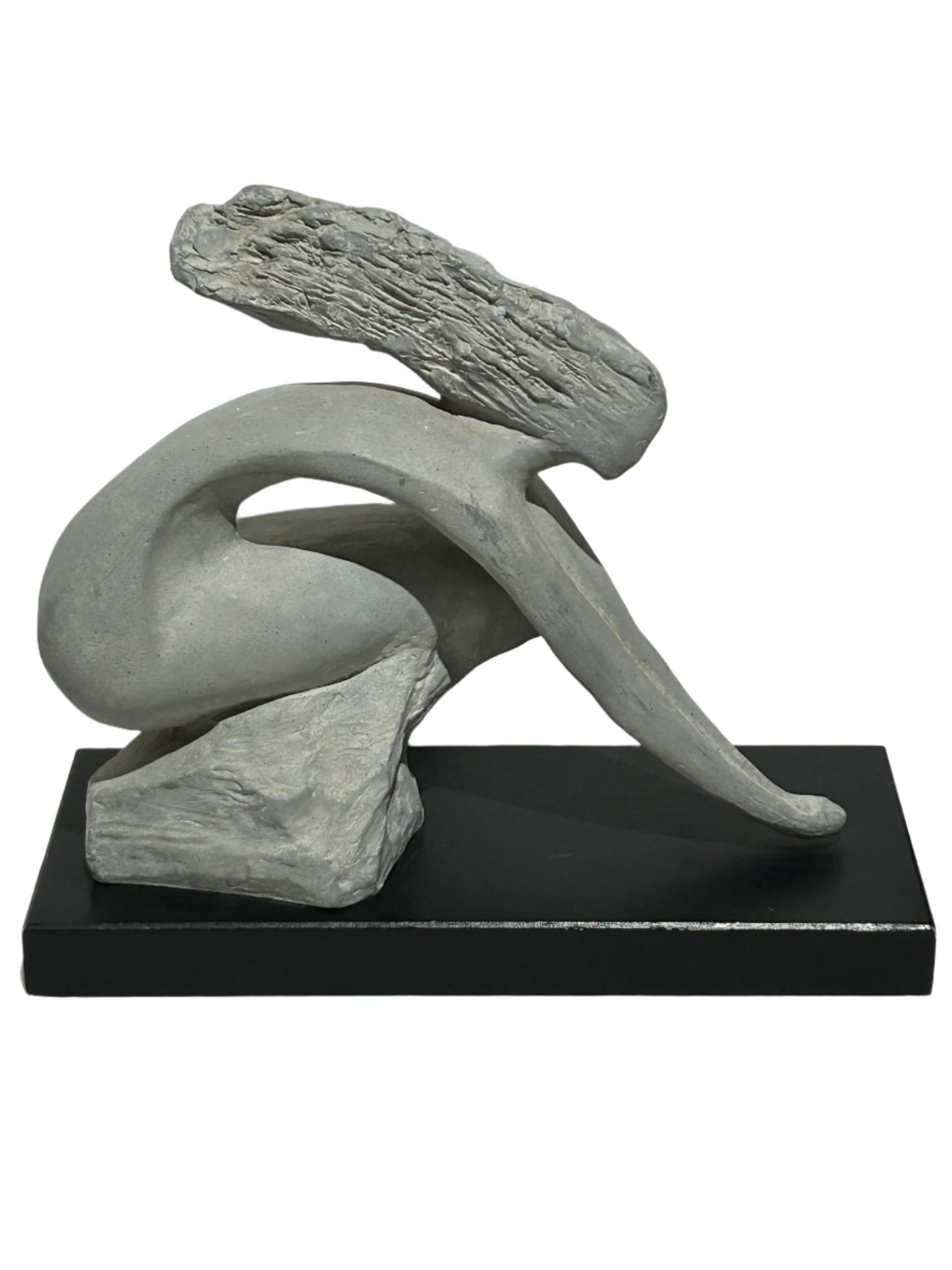 Experience the timeless beauty of a Vintage stone sculpture on a rustic wood base, masterfully crafted by renowned artist David Fisher.
